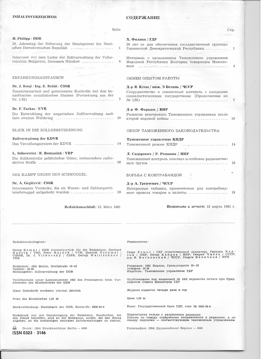 SOZIALISTISCHE ZOLLKONTROLLE / ÑÎÖÈÀËÈÑÒÈ×ÅÑÊÈÉ ÒÀÌÎÆÅÍÍÛÉ ÊÎÍÒÐÎËÜ ¹ 2 - 1981