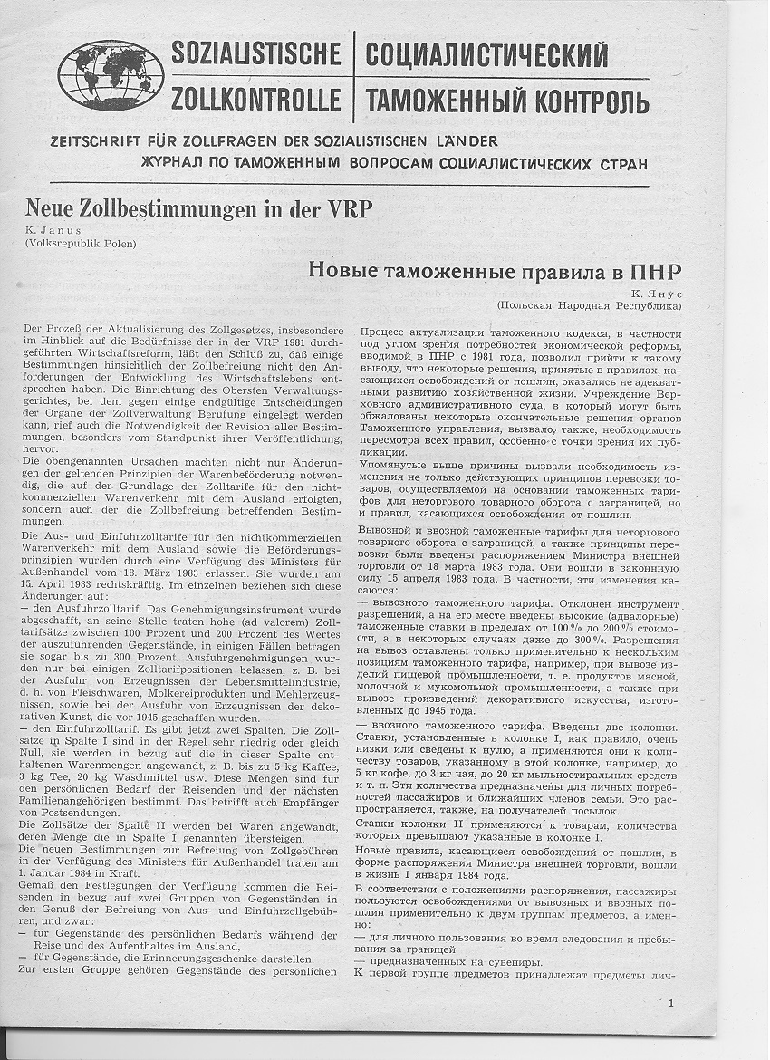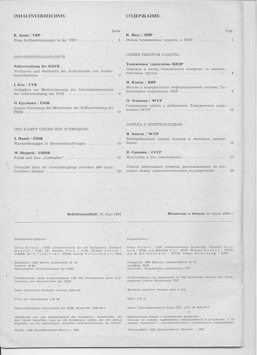 SOZIALISTISCHE ZOLLKONTROLLE / ÑÎÖÈÀËÈÑÒÈ×ÅÑÊÈÉ ÒÀÌÎÆÅÍÍÛÉ ÊÎÍÒÐÎËÜ ¹ 3 - 1984